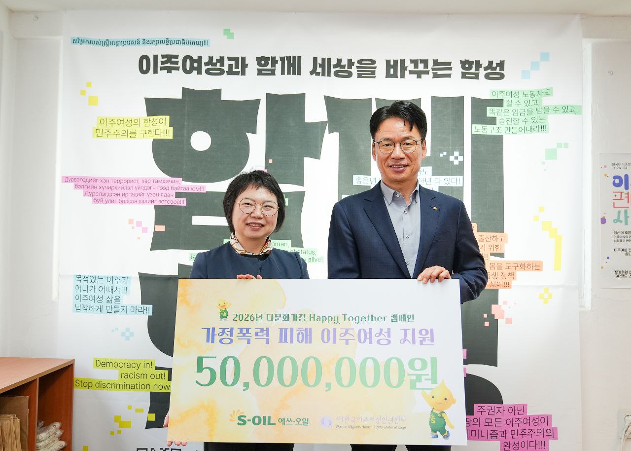S-OIL(에쓰오일)과 함께 하는 가정폭력 피해 이주여성 지원사업 기부금 전달식을 2026년 3월 5일(목) 진행했습니다