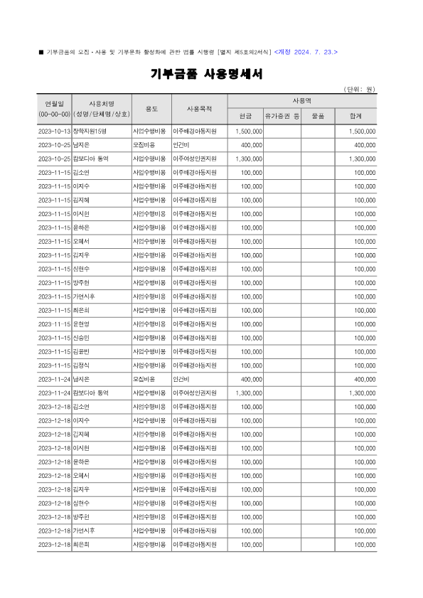 기부금품 사용명세서1_1 기부금품 사용명세서1_2 기부금품 사용명세서1_3 기부금품 사용명세서1_4 기부금품 사용명세서1_5