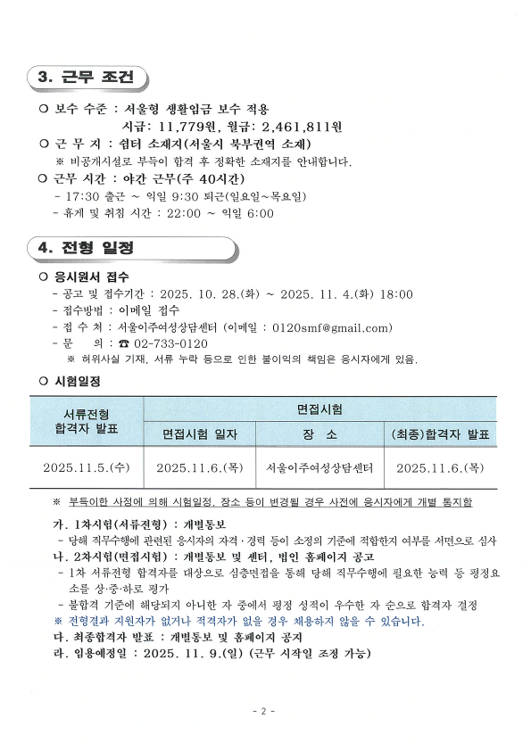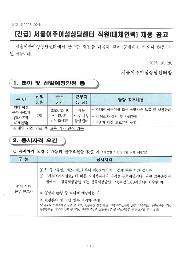 서울이주여성상담센터 직원[대체인력] 채용 공고