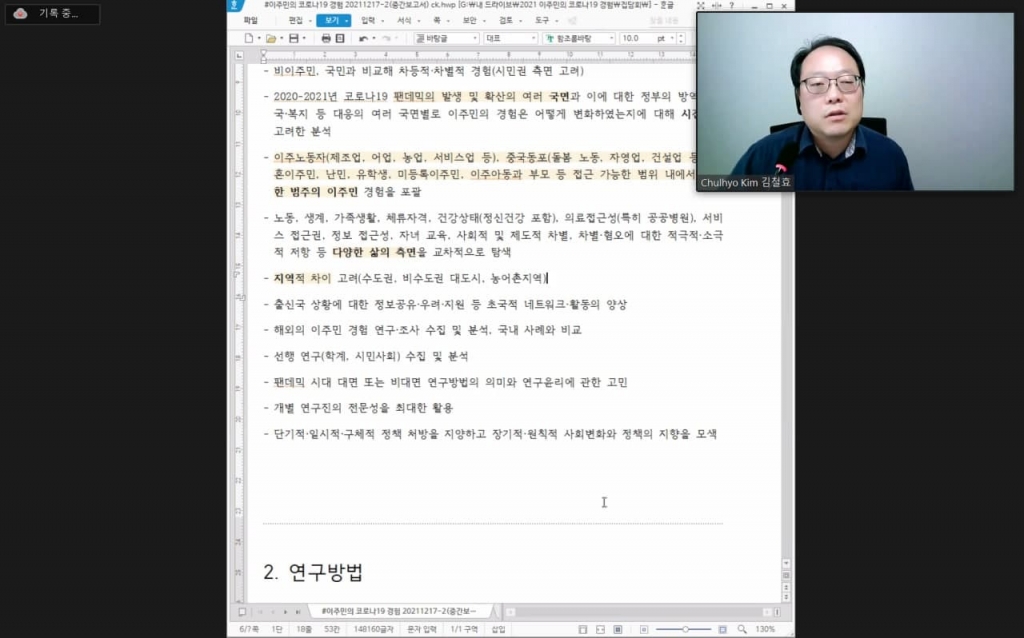 2021.12.20 한국이주여성인권센터는 ‘한국사회 이주민의 팬데믹 경험 실태조사 발표 및 이주민 통합지원을 위한 집담회’를 진행했습니다. 인권센터는 연구팀을 꾸려 지난 1년간 코로나19로 인해 이주민들이 겪은 어려움 등에 대한 실태조사를 하고 발표자리를 가졌습니다. 이날 한국사회 이주민의 팬데믹 경험에 대한 실태조사 결과 발표는 물론 향후 이주민 통합지원을 위해 무엇이 필요하는지 활발한 토론이 진행되었습니다. 뜻 깊은 자리에 함께 해주신분들께 감사드립니다.